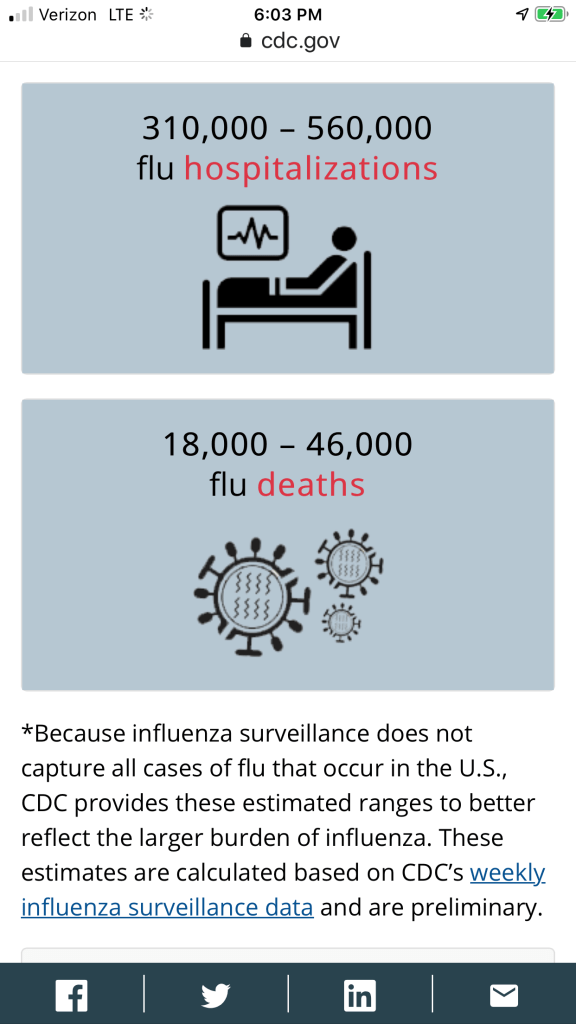 I believe there is more to it. I know no one that gets treated for the flu while the medical staff is wearing hazmat suits. Hopefully, a vaccine is discovered soon. 🙏❤️